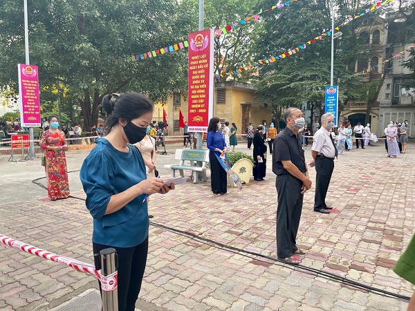 Năm nay đã hơn 80 tuổi, Bà Vũ Thị Minh Khoa, chung cư NƠ 14C, Định Công không nhỡ rõ mình có bao nhiêu lần đi bỏ phiếu thể hiện quyền cử tri của mình. Lần đầu đi bỏ phiếu trong điều kiện dịch bệnh bà thấy vừa lo lắng, vừa phấn khởi. Phấn khởi bởi trong tình hình khó khăn như vậy mà Đảng, Nhà nước, TP. Hà Nội vẫn tổ chức được cuộc bầu cử tạo điều kiện cho người dân thực hiện quyền lợi của mình.