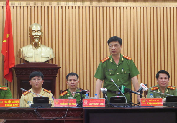 | Đại tá Nguyễn Duy Ngọc, Phó Giám đốc Công an Thành phố Hà Nội thông tin về vụ án. Ảnh: Gia Huy |