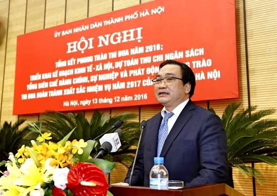 Chiều 13/12, UBND TP Hà Nội tổ chức Hội nghị tổng kết phong trào thi đua năm 2016; triển khai kế hoạch kinh tế-xã hội, dự toán thu chi ngân sách, tổng biên chế hành chính, sự nghiệp và phát động phong trào thi đua hoàn thành xuất sắc nhiệm vụ năm 2017.